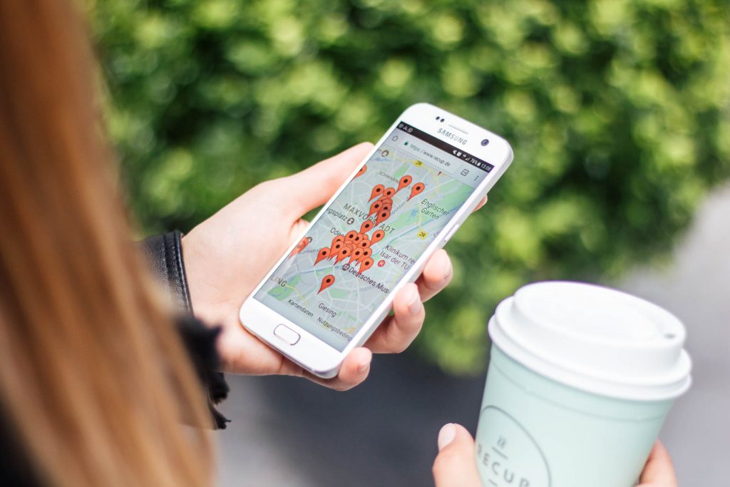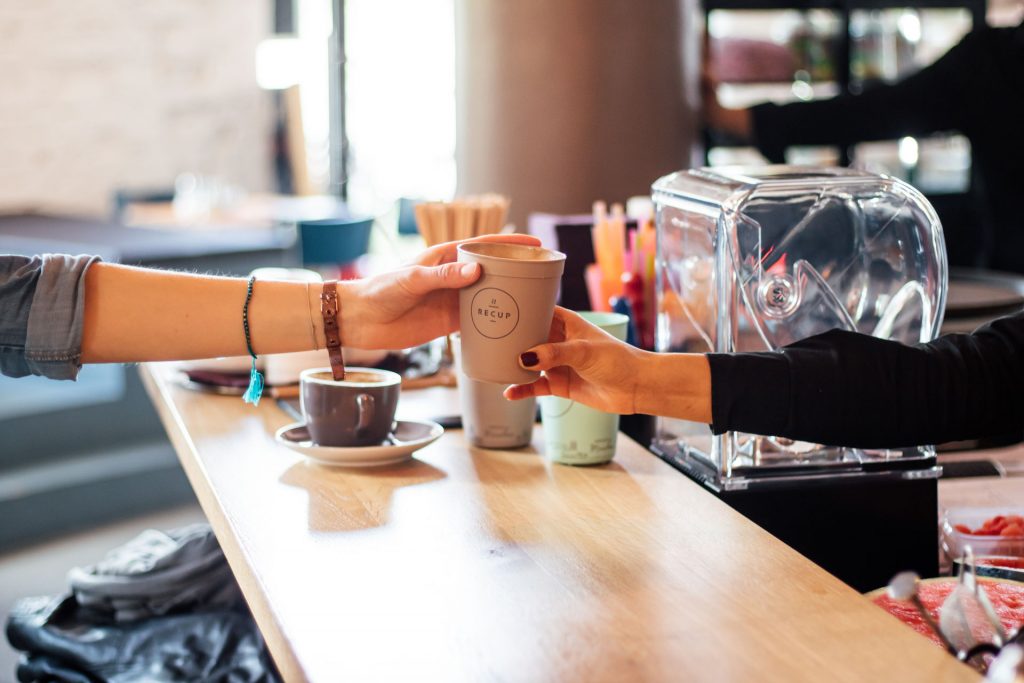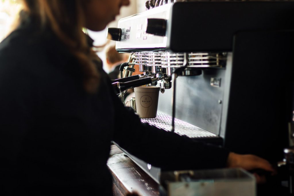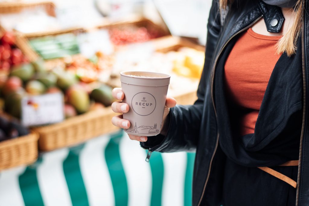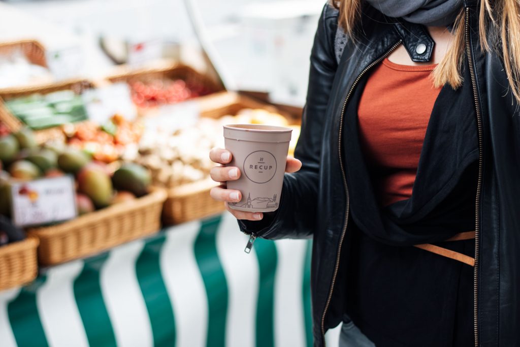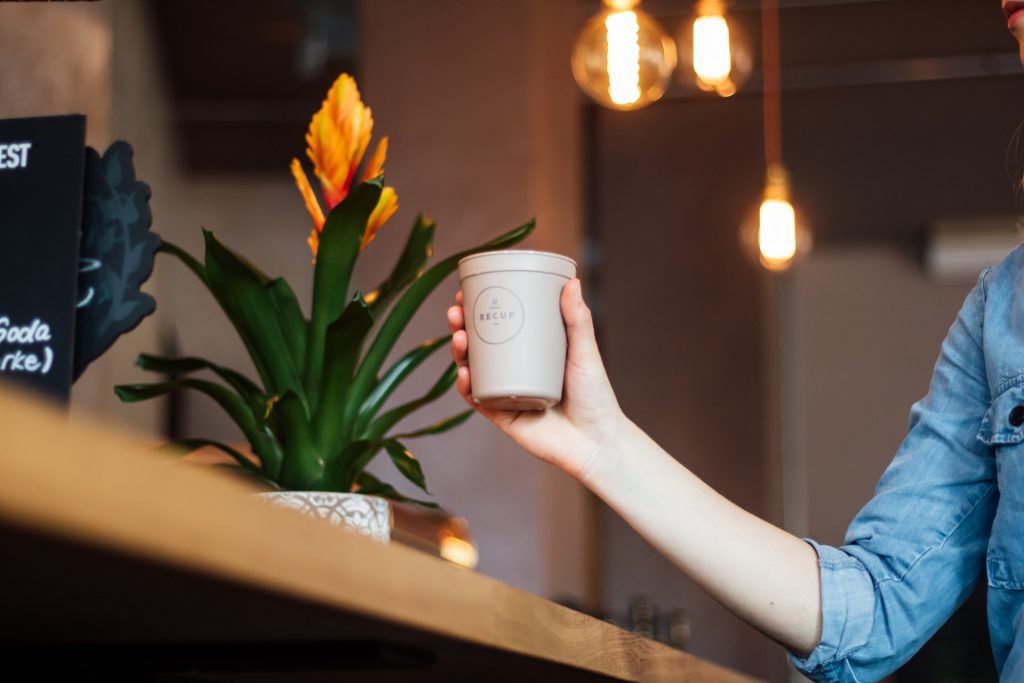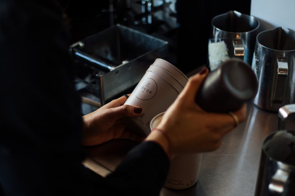 Gar nicht so leicht Kaffeebecher cool in Szene zu setzen. Mit Studiobildern wird das auf jeden Fall nichts. Also habe ich mir eine Mitarbeiterin des Startups geschnappt und durch die coolsten Cafès der Stadt gezogen. Im Gepäck natürlich die Kaffeebecher, die ich im natürlichen Umfeld abgelichtet haben. Die Bilder hat Recup hauptsächlich für ihre Social Media Plattform und ihre neue App gebraucht.